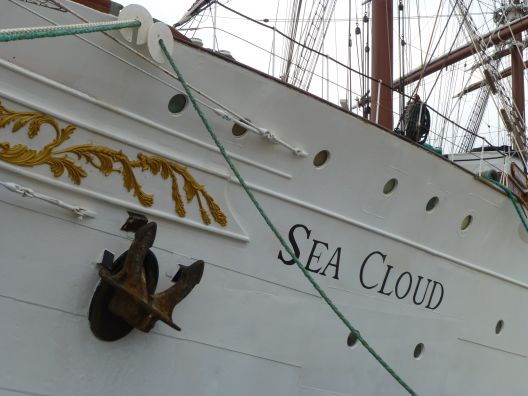 Im Hafen von Pylos Die Sea Cloud, Luxuskreuzfahrtsegelschiff wurde im 1931 durch den US-amerikanischen Multimillionär Eduard Francis Hutton in Auftrag gegeben