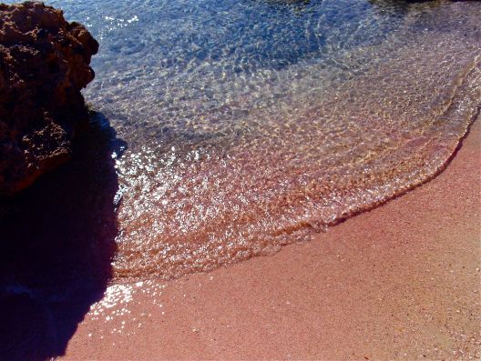 Sandstrand ist durch winzige Muschelteilchen rosa gefärbt
