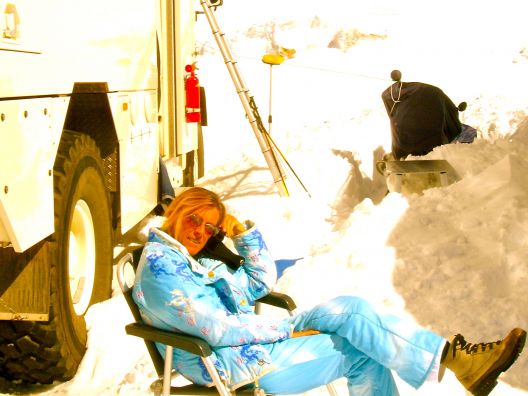 Nach dem Schneesturm haben wir die Gunst der Stunde für ein Sonnenbad genutzt und uns wieder aufgewärmt.