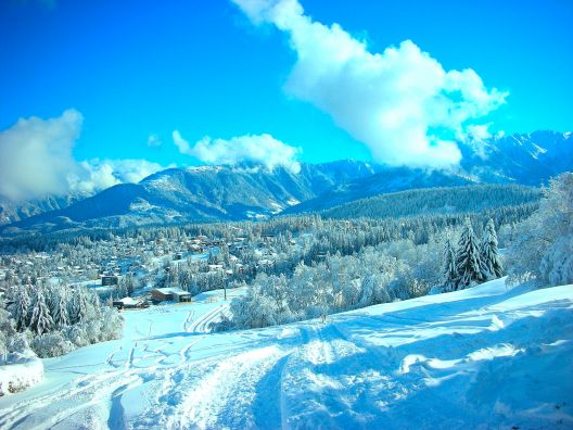 Das frischverschneite Flims mit Sicht in die Bündner Alpen.