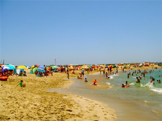 am Wochenende vergnügen sich die Leute am Strand.