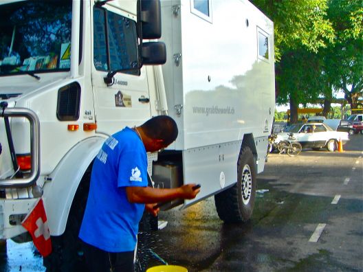 vor unserer Abreise in die Schweiz wird unser Unimog nochmals gründlich gewaschen. Im Sommer werden wir wieder nach Buenos Aires zurückkehren und unsere Reise geht dann weiter nach Uruguay und Brasilien.