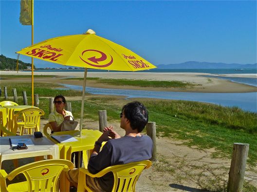 am wunderschönen Sandstrand der Insel Santa Catarina