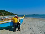 am wunderschönen Sandstrand der Insel Santa Catarina